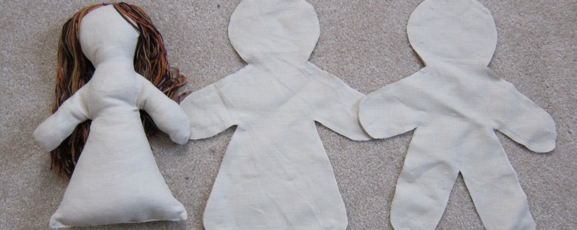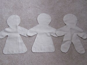 Lately, I’ve been working on some details for Anna Bronski, the grandmother in brown (below), and Agnes Matzerath, the mother in black. Part of Anna’s story involves hiding her soon-to-be husband beneath her many skirts (along with charred potatoes to warm her feet). I just bought fabric to start the skirts — exciting! Agnes, on the other hand, has died from eating too much eel…so I’ve got an eel poem springing from her stomach. Photos below of the project, in progress…