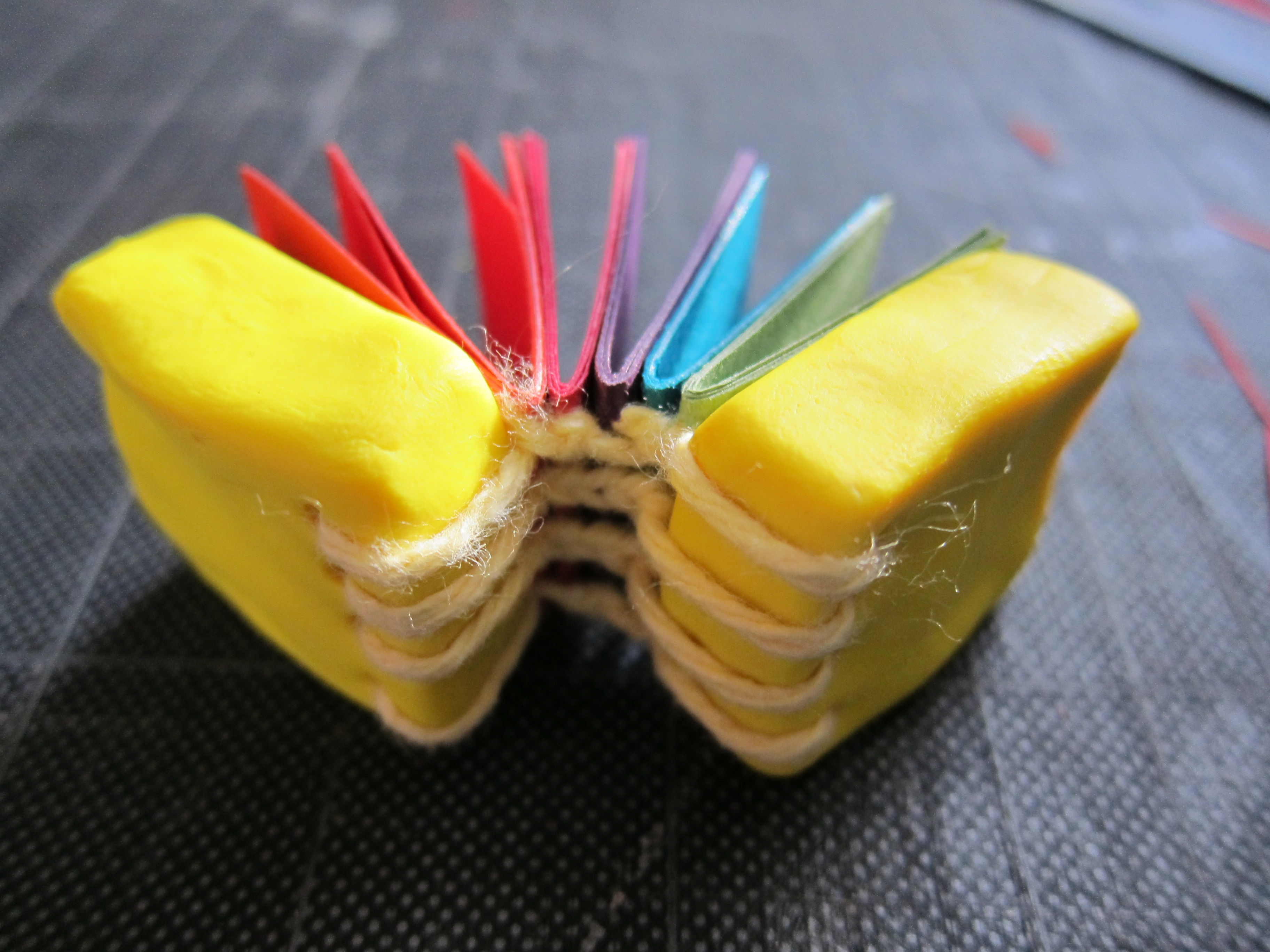 I like the use of sculpting clay as our cover. What a fun project with such delicate material and small stitching. Great work.