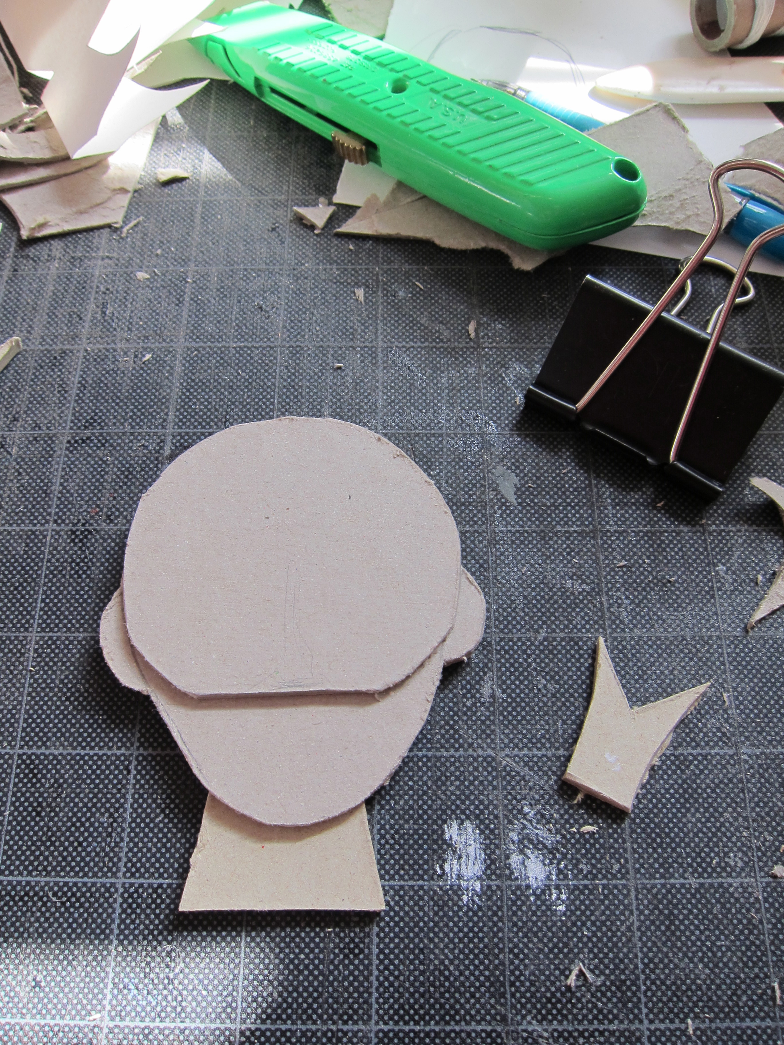 Carving the nose was tough! I wound up gluing several pieces of binder board together and then carving the block down. That’s a first…