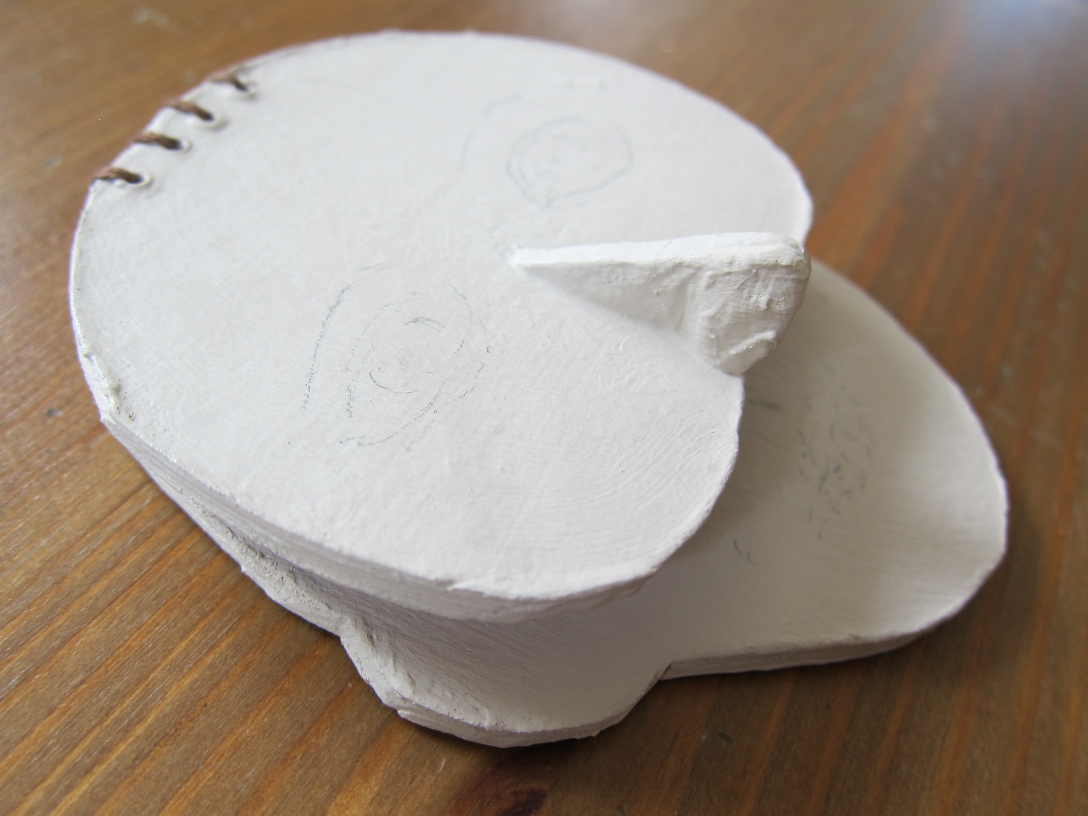 I started by carving the shapes: the full face, a half face that lifts to reveal the book, and the neck, which acts as a stand when pushed backwards.