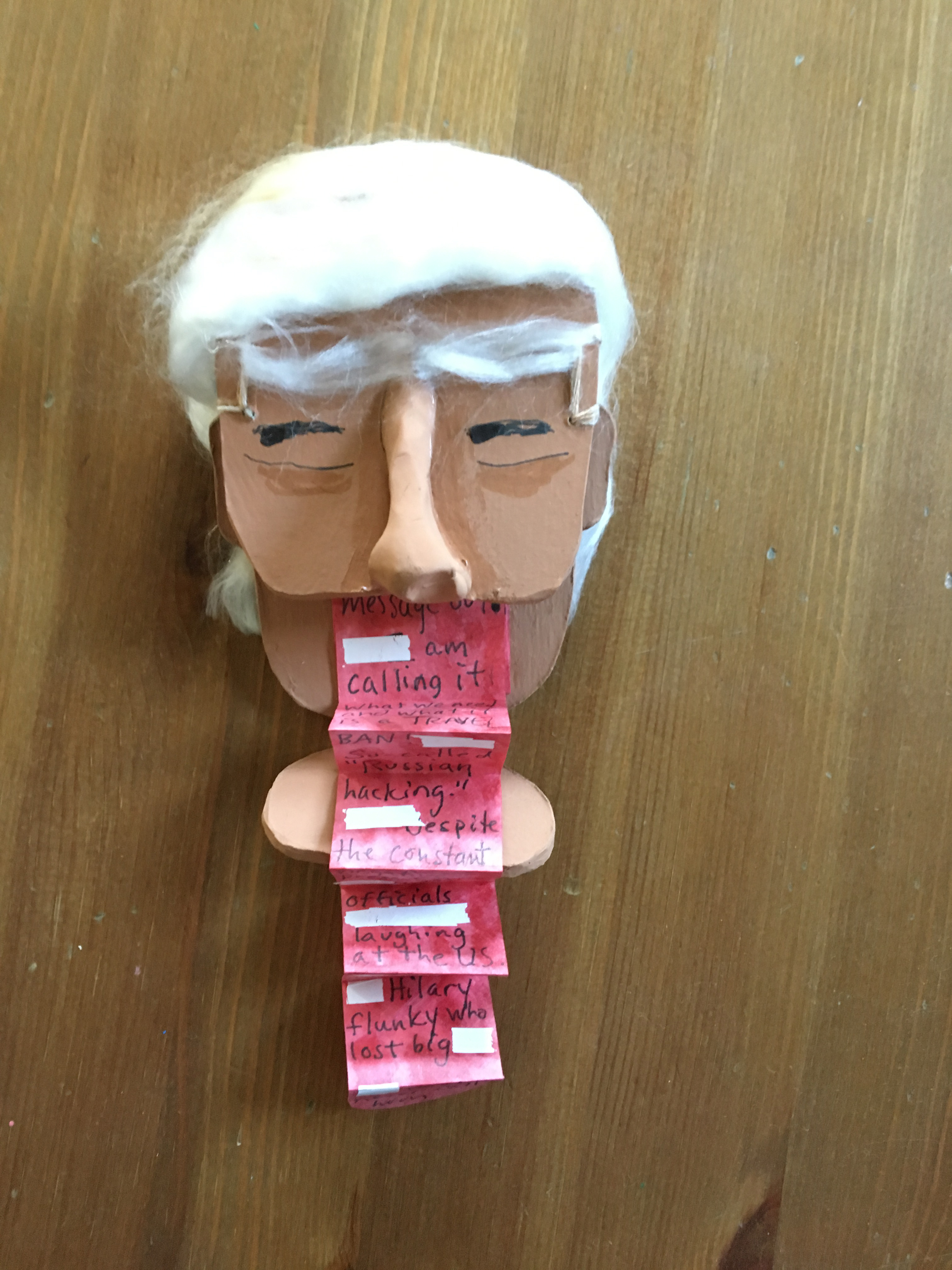 It’s fun to try to figure out new ways of opening them, making them talk, and feel like real little people with personalities that fit their forms. Sunglasses guy, for instance, contains a sonnet about mansplaining. Paola’s holds a short poem and collage about her origins. And “You Are What You Tweet’ is pretty self explanatory…the “head” is filled with candy wrappers and the tongue spews redacted nonsense.