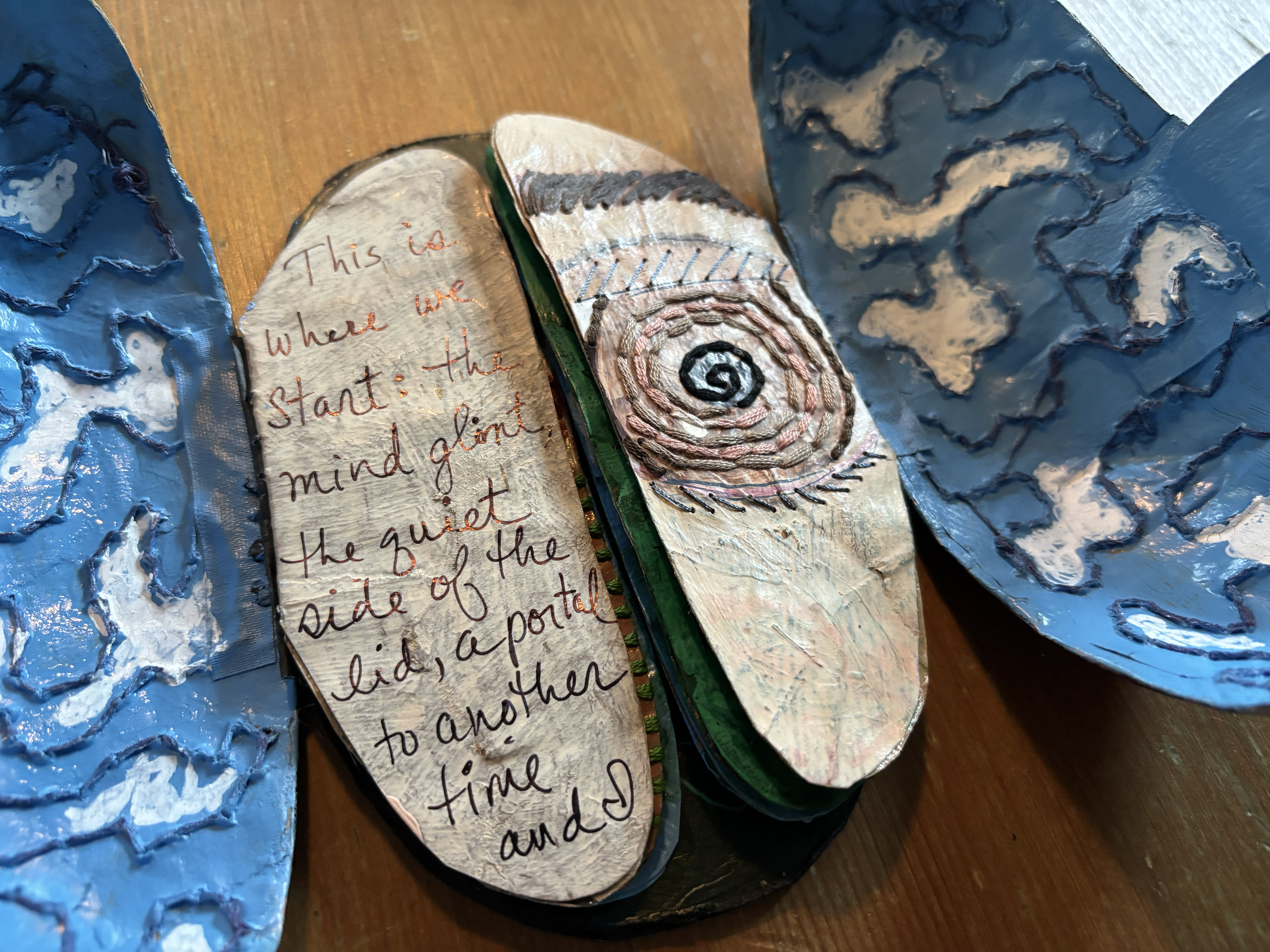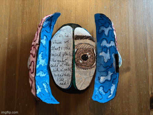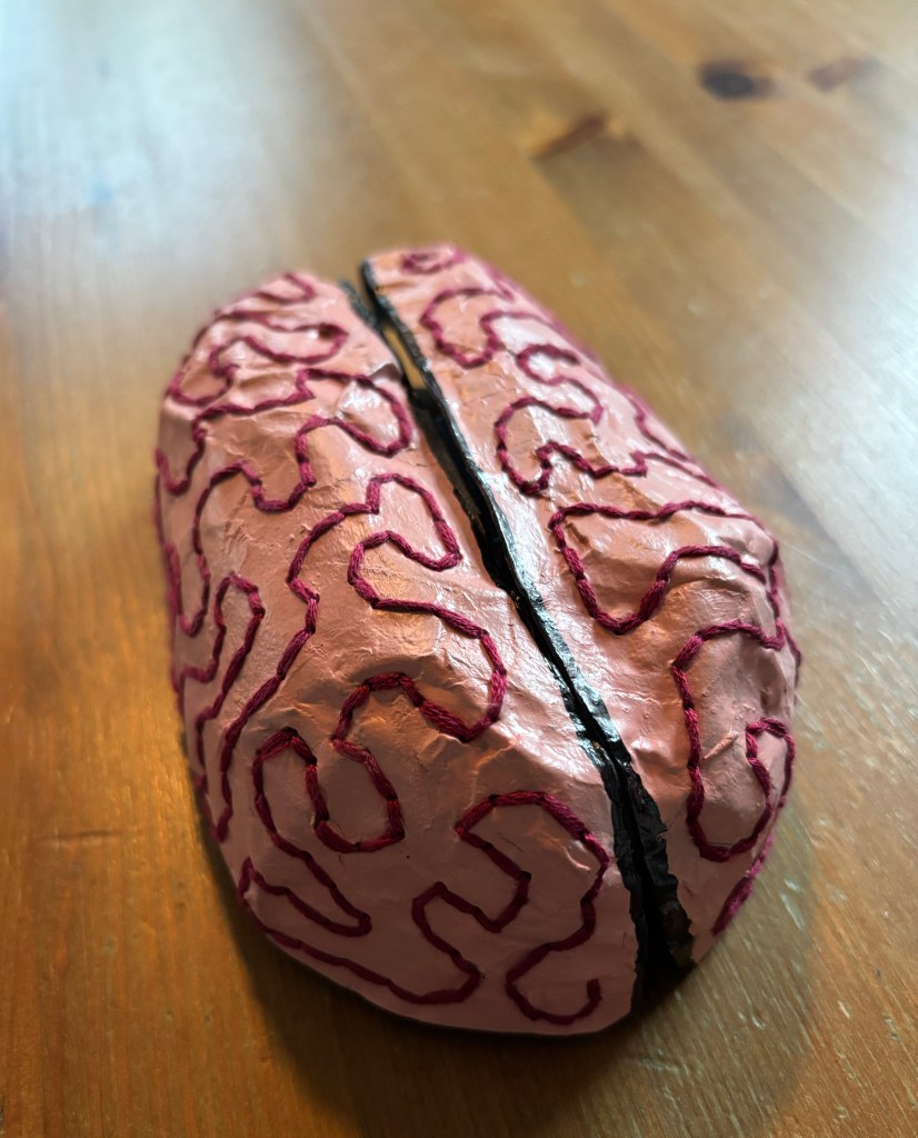 I started building the brain structure a while ago with the idea that I might physically open it up…but then I got stuck on how the pages might be bound. As it turns out, we all have two lobes and a gate fold inside us…held together with a hidden magnet. 🙂