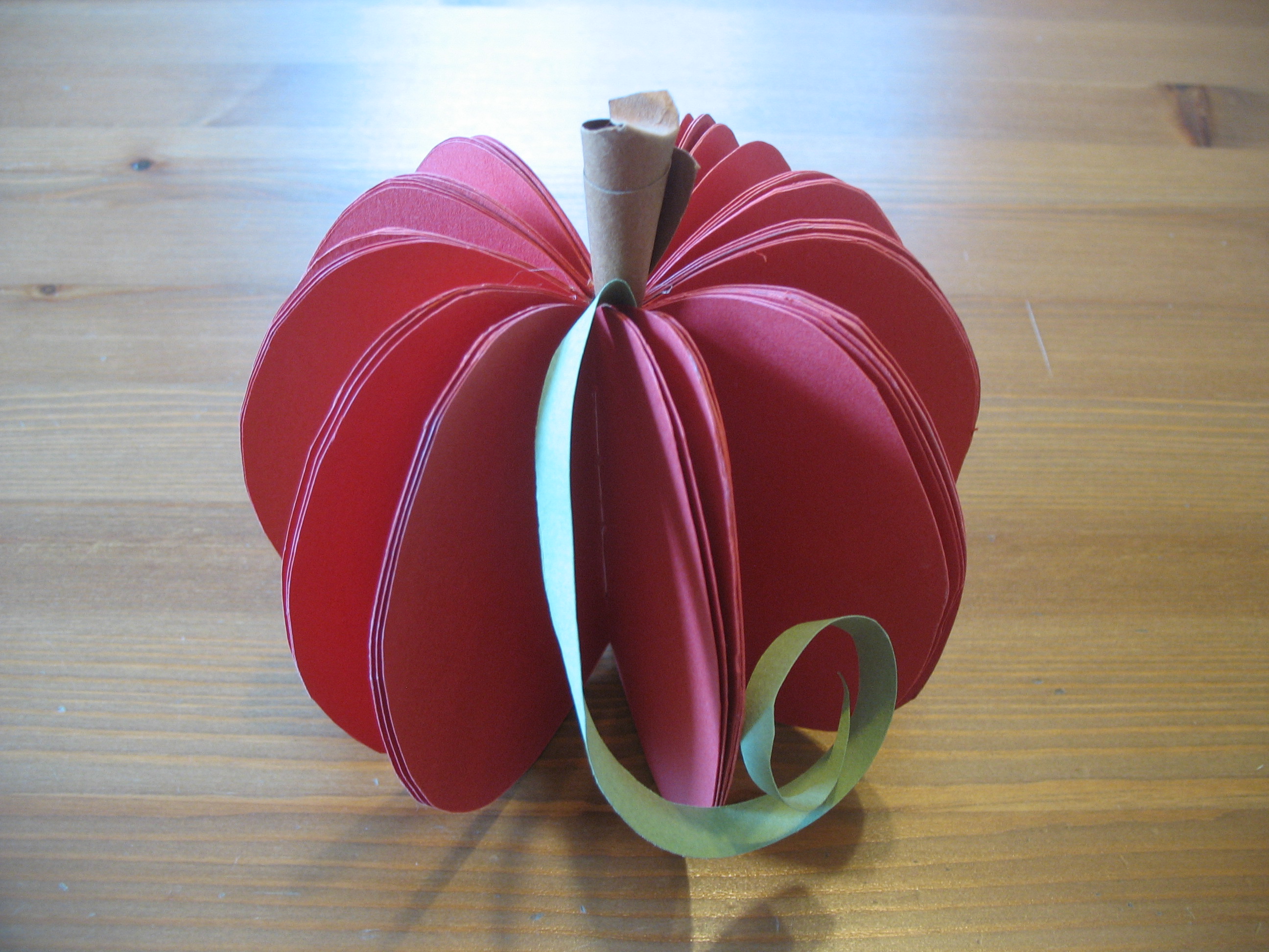 Paper Pumpkin 2007, edition of one Pumpkin was made with twelve signatures of orange Strathmore paper, pulled together front to back and glued with Mod Podge. It has a brown paper stem and green paper leaf. Rate this:Share this:Share Click to share on Facebook (Opens in new window) Facebook Like Loading...